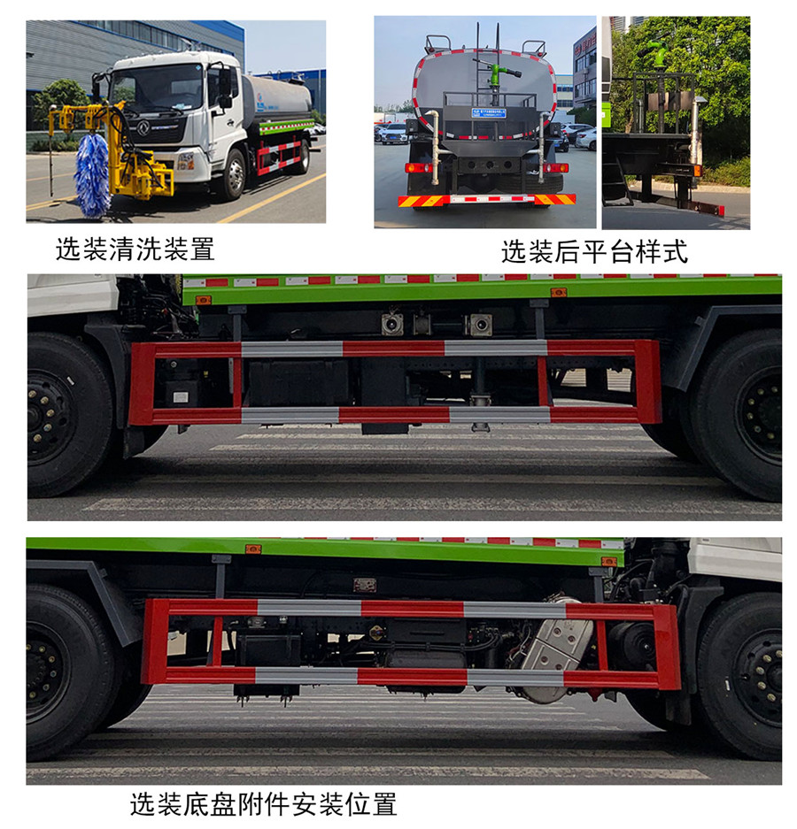 | 配置 | 1、該車主要用途為城市護欄清洗,專用裝置為儲液罐,清掃裝置。介質:水,密度:1000/立方米,罐體有效容積:9.98立方米,罐體長壯ぶ嶙短軸(mm):4800?250?250;2、僅在護欄清洗作業時安裝清掃裝置,整車長/前伸/前懸/軸距/后懸/ (mm)對應關系為:9400/1200/1400/5000/1800,9400/1200/1400/4700/2100,9200/1200/1400/4500/2100,9200/1200/1400/4200/2400;當不進行清洗作業時,車輛前部安裝有固定架,整車長/前伸/前懸/軸距/后懸(mm)對應關系為:8380/180/1400/5000/1800,8380/180/1400/4700/2100,8180/180/1400/4500/2100,8180/180/1400/4200/2400。3、側、后防護材料為Q235,連接方式為焊接連接固定,后部防護裝置斷面尺寸(寬贅?50?20(mm),后部防護離地高度:490mm:選裝后部平臺結構樣式選裝清洗裝置,選裝底盤附件安裝位置;4、隨底盤選裝高度不同的駕駛室;選裝駕駛室頂部裝飾燈;選裝前霧燈;選裝駕駛室前面罩;選裝前保險杠及前部燈具;選裝駕駛室前臉擾流罩,選裝后尾燈;ABS型號/生產廠家:3631010-C2000/東科克諾爾商用車制動系統(十堰)有限公司,ABS 8/東科克諾爾商用車制動系統(十堰)有限公司, 4460046450/威伯科汽車控制系統(中國)有限公司。整備質量8300kg,對應的載質量9570kg(2人)9505kg(3人)。 | ||