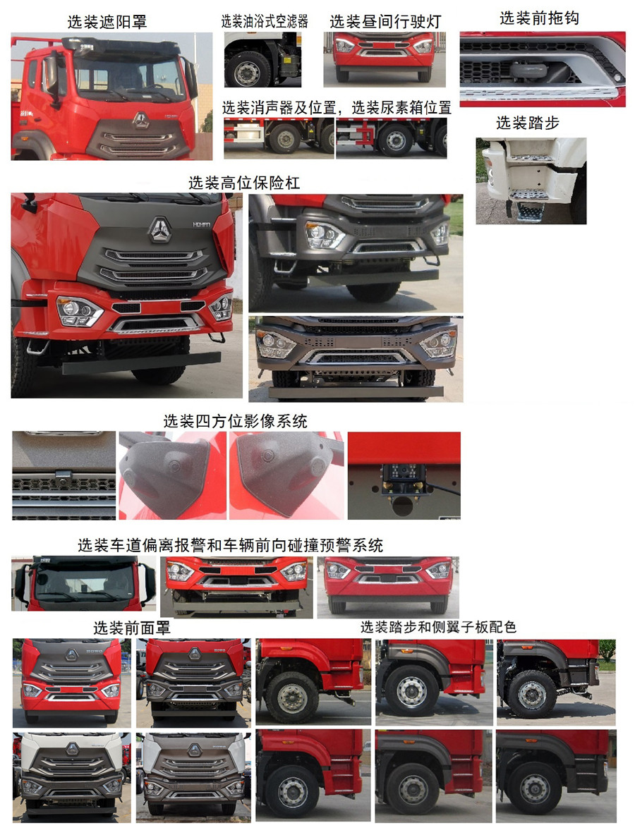 | 該車可選裝遮陽罩。選裝油浴式空濾器。選裝晝間行駛燈。選裝消聲器及位置。選裝尿素箱位置。選裝高位保險杠。選裝踏步。選裝四方位影像系統。選裝車道偏離報警和車輛前向碰撞預警系統。選裝平板型式。選裝爬梯型式。駕駛室準乘人數與額定載質量參數一一對應。僅選用二類底盤的1800+4800軸距。車長與后懸尺寸參數一一對應。該車裝MC07.27-60、MC07.29-60、MC07.31-60、MC07.34-60、MC07H.33-60、MC07H.35-60、WP7.270E61、WP7.300E61、WP8.350E61發動機對應的油耗申報值均為32.0L/100km。該車裝MC07.27-60、MC07.29-60、WP7.270E61、WP7.300E61發動機的最大凈功率分別為199kW、210kW、194kW、215kW,VIN前八位為LZZPBGMG;裝MC07.31-60、MC07.34-60、MC07H.33-60、MC07H.35-60、WP8.350E61發動機的最大凈功率分別為225kW、248kW、237kW、254kW、252kW,VIN前八位為LZZPBGNG。側面防護裝置連接方式為螺栓連接,材料材質為Q235,采用后部結構件替代后下部防護裝置,后部結構件離地高度為460mm。ABS系統型號為446 004 6300,生產企業為威伯科汽車控制系統(中國)有限公司。該車可選裝限速裝置,限速89km/h。安裝具有衛星定位功能的行駛記錄儀。選裝ETC車載裝置。選裝踏步和側翼子板配色。選裝新款面罩。 | |||