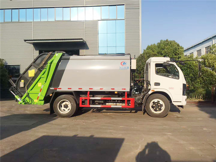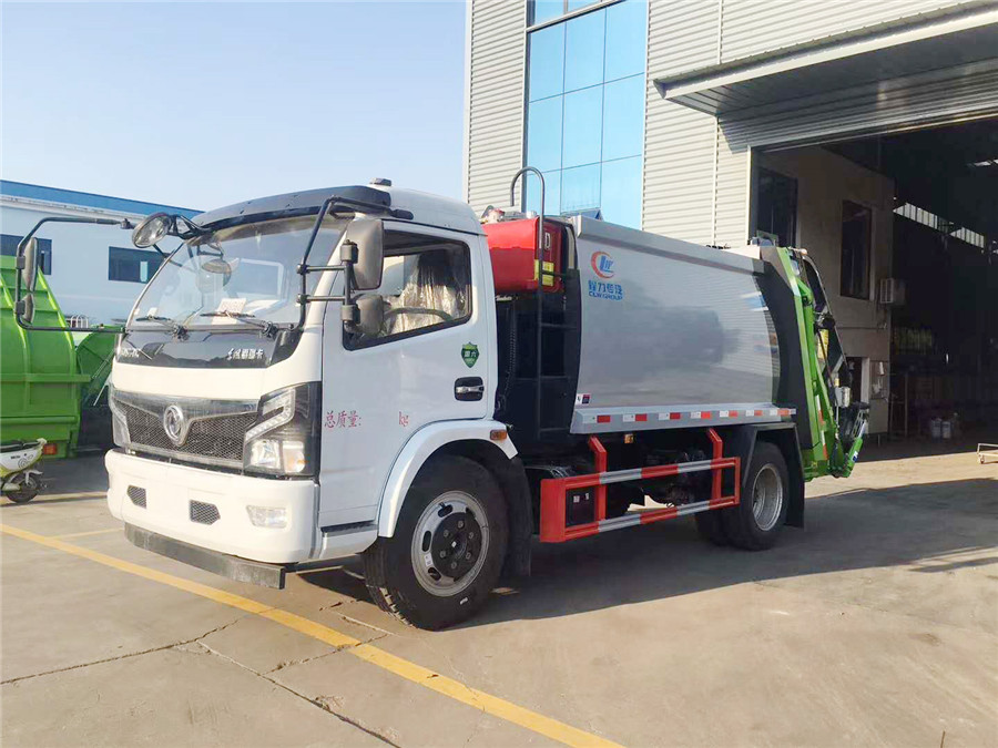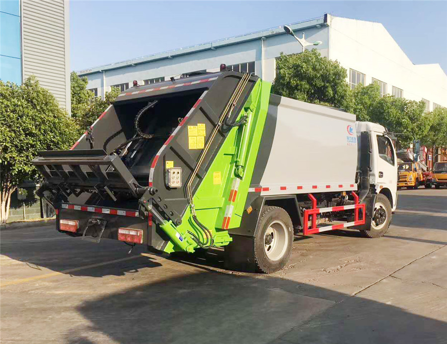上裝配置:效壓縮容積7-8立方,可裝5噸生活垃圾,壓縮倍率5:3倍,壓縮后生活垃圾密度從0.36變為0.96以上,帶污水收集箱,新款平板式箱體更美觀,尾部帶密封橡膠圈,可防污水滴漏二次污染。尾部可帶翻轉斗或掛桶裝置,可選裝駕駛室和尾部雙操控系統。