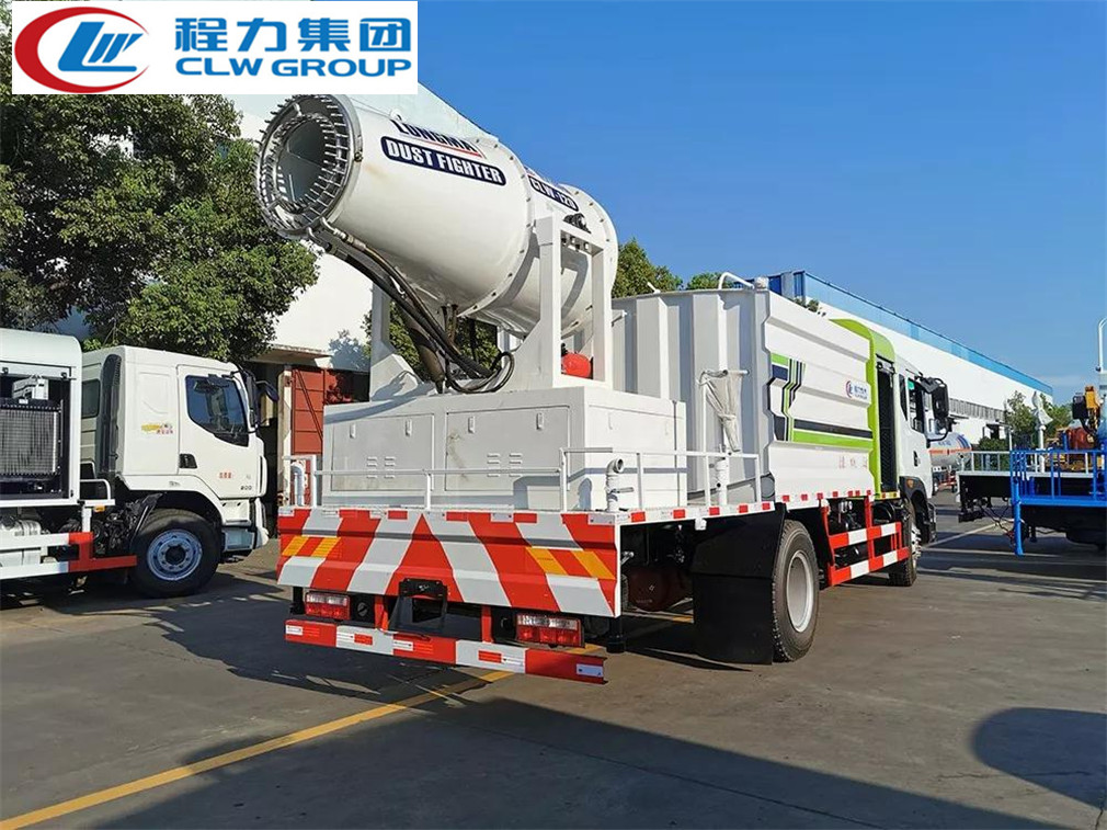 霧炮參數:尾部裝高效率霧炮風機,副發動機功率為50kw,品牌可選濰柴、玉柴或康明斯,霧炮射程可達60-100米,覆蓋面積可達13400-2000平方米,噴霧流量:50-150L/min,電子搖控操作,100米內可上下左右自動搖控噴霧,實現360度旋轉。