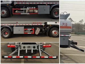 | 配置 | 該車適用于危險(xiǎn)品運(yùn)輸。運(yùn)輸類項(xiàng)號(hào):3,罐體有效容積:12.6立方米。罐體外形尺寸(長(zhǎng)壯ぶ嶙短軸)(mm):5700?000?400。可裝配加油機(jī)型號(hào)及生產(chǎn)企業(yè):BL1111Z/珠海市貝林加油設(shè)備有限公司中山分公司,HS1812B/托肯恒山科技(廣州)有限公司,SKES-1112/恒和嘉華科技有限公司,SKDS-2001A/上海伯萊機(jī)械有限公司,SK20QF-111A,SK20QF-222A/鄭州三金石油設(shè)備制造有限公司,CS20D1110F/正星科技有限公司,JSK-70B1121CZ,JSK-70B1121C,JSK45B1121C/穩(wěn)恩佳力佳(北京)石油化工設(shè)備有限公司,HT-YV60E/隨州市華特專用設(shè)備有限公司,XTST121BF1/邢臺(tái)正潤(rùn)通科技發(fā)展有限公司。連接方式:左右側(cè)面防護(hù)及后部防護(hù)均采用焊接連接,防護(hù)材料:Q235B碳鋼,防護(hù)斷面尺寸(mm):140?0,后部防護(hù)離地高度(mm):480。僅采用底盤子午線輪胎和帶ABS的底盤,該車前輪安裝盤式制動(dòng)器,前置排氣管,裝配限速裝置,限速80km/h。安裝帶有衛(wèi)星定位功能的行駛記錄儀。ABS系統(tǒng)生產(chǎn)廠家,型號(hào) :焦作博瑞克控制技術(shù)有限公司,J ABS。危險(xiǎn)貨物運(yùn)輸車輛的類型(FL型車輛)。發(fā)動(dòng)機(jī)型號(hào)及對(duì)應(yīng)油耗值(L/100km)分別為CY4SK761(26.8),D4.5NS6B220(26.6),YCS04200-68(21.36.4),B6.2NS6B230(26.7)。 轉(zhuǎn)向輪安裝輪胎爆胎應(yīng)急防護(hù)裝置,該車后軸為采用空氣懸架。擴(kuò)展后部大梁上面帶花紋板照片。 | ||